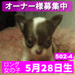 おかげさまで、チワワのコンテスト大会でチャンピオンに輝いたお父さん犬、お母さん犬に似たとっても健康でかわいいチワワの赤ちゃんたち(スムース・ロング)に恵まれ、多くのお客様に喜んでいただいております。