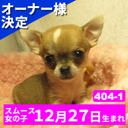 オーナー様決定 【404-1】令和4年12月27日生まれのチワワ(スムース) メス カラー レット&ホワイト