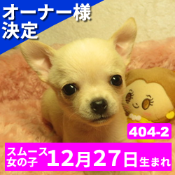 オーナー様決定 【404-2】令和4年12月27日生まれのチワワ(スムース) メス カラー クリーム&ホワイト