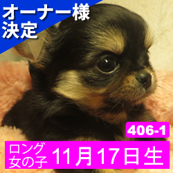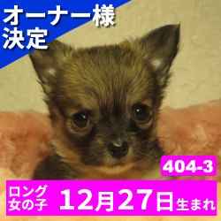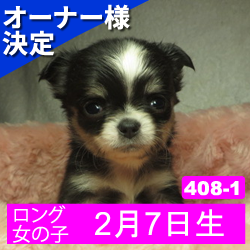オーナー様決定 【408-1】2月7日生まれのチワワ(ロング) メス カラー ブラックタン&ホワイト