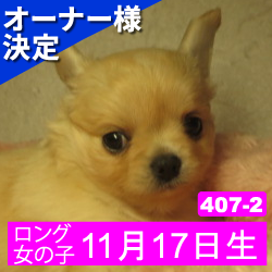 オーナー様決定 【407-2】令和5年11月17日生まれのチワワ(ロング) メス カラー フォーン