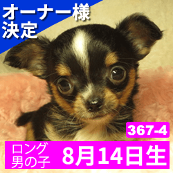 オーナー様決定 【367-4】令和元年8月14日生まれ チワワ ロング オス カラー ブラックタン&ホワイト