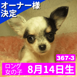 オーナー様決定 【367-3】令和元年8月14日生まれ チワワ ロング メス カラー ホワイト&ブラック