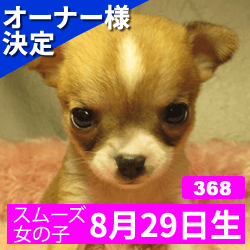 オーナー様決定 【368】令和元年8月29日生まれ チワワ スムース メス カラー オレンジ&ホワイトマーキング