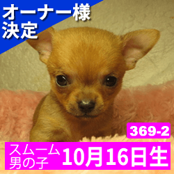 オーナー様決定 【369-2】令和元年10月16日生まれ チワワ スムース オス カラー レッド