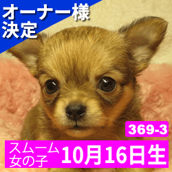 オーナー様決定 【369-3】令和元年10月16日生まれ チワワ スムース メス カラー フォーン&クリーム
